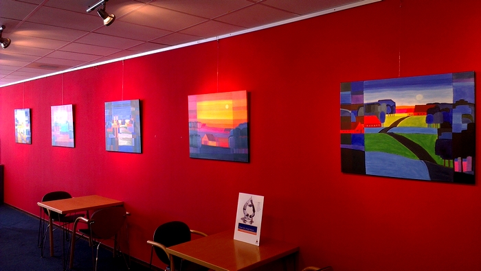 Ron Art Kleurrijk schilderijen abstract kunstschilder Nijmegen Sanadome expositie exposeren kleuren Groesbeek Berg en Dal Waalkade Grote Markt kunst kunstenaar exto opdracht cadeau Hans van Megen Ariane Koch skyline van de stad Ron Claassen Dikke Dames microfoon DJ Ronnie Vermegen Google Ziggo formule 1 derde kamer arsenaal gezondheidscentrum lindenholt kunstmarkt Gemeente Nijmegen oudste stad van Nederland interieur modern omgeving wijchen